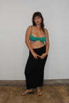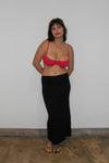 Top estilo meia taça sem bojo, forro duplo e alças finas reguláveis na cor vermelha. A modelo veste P.