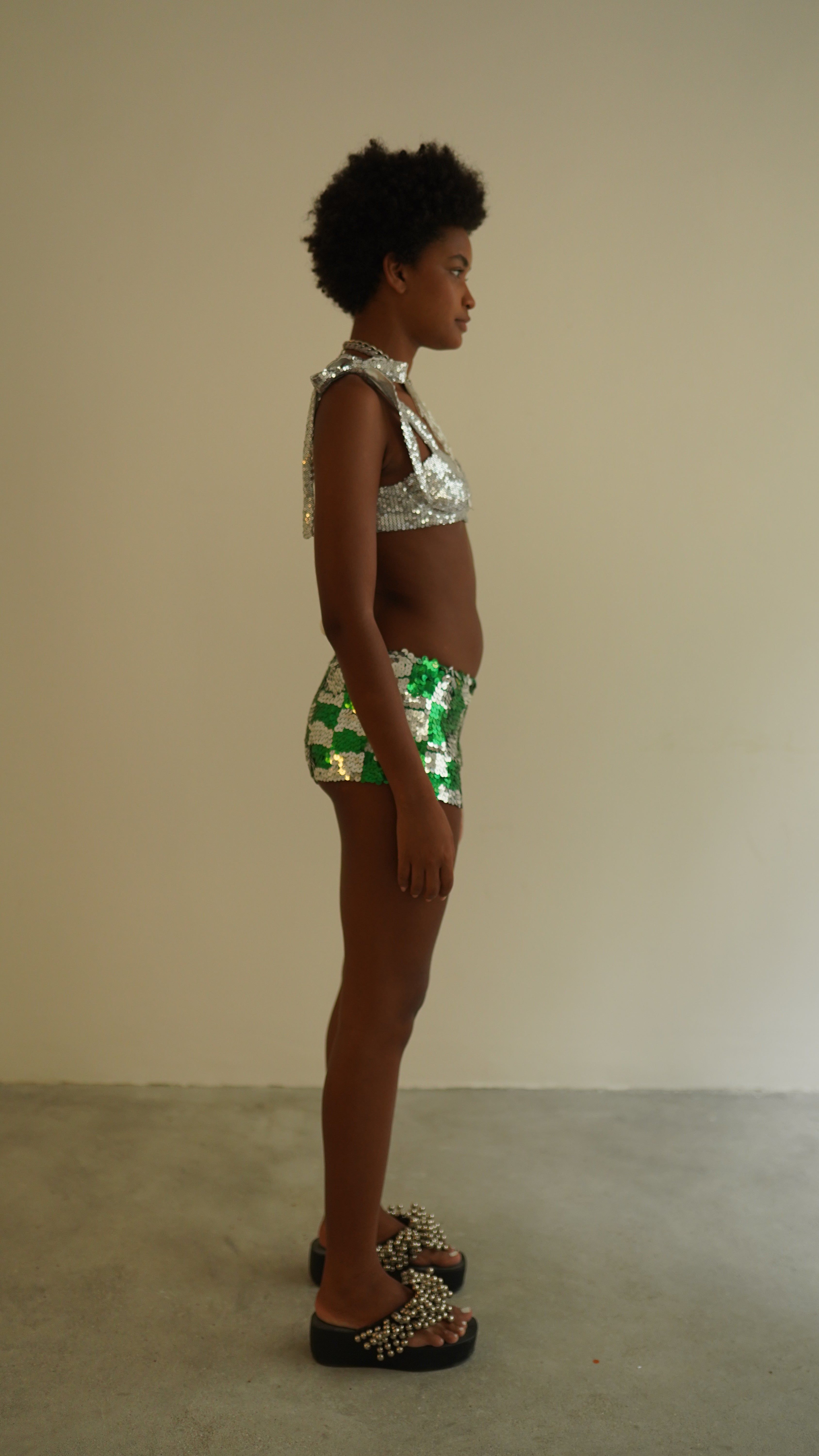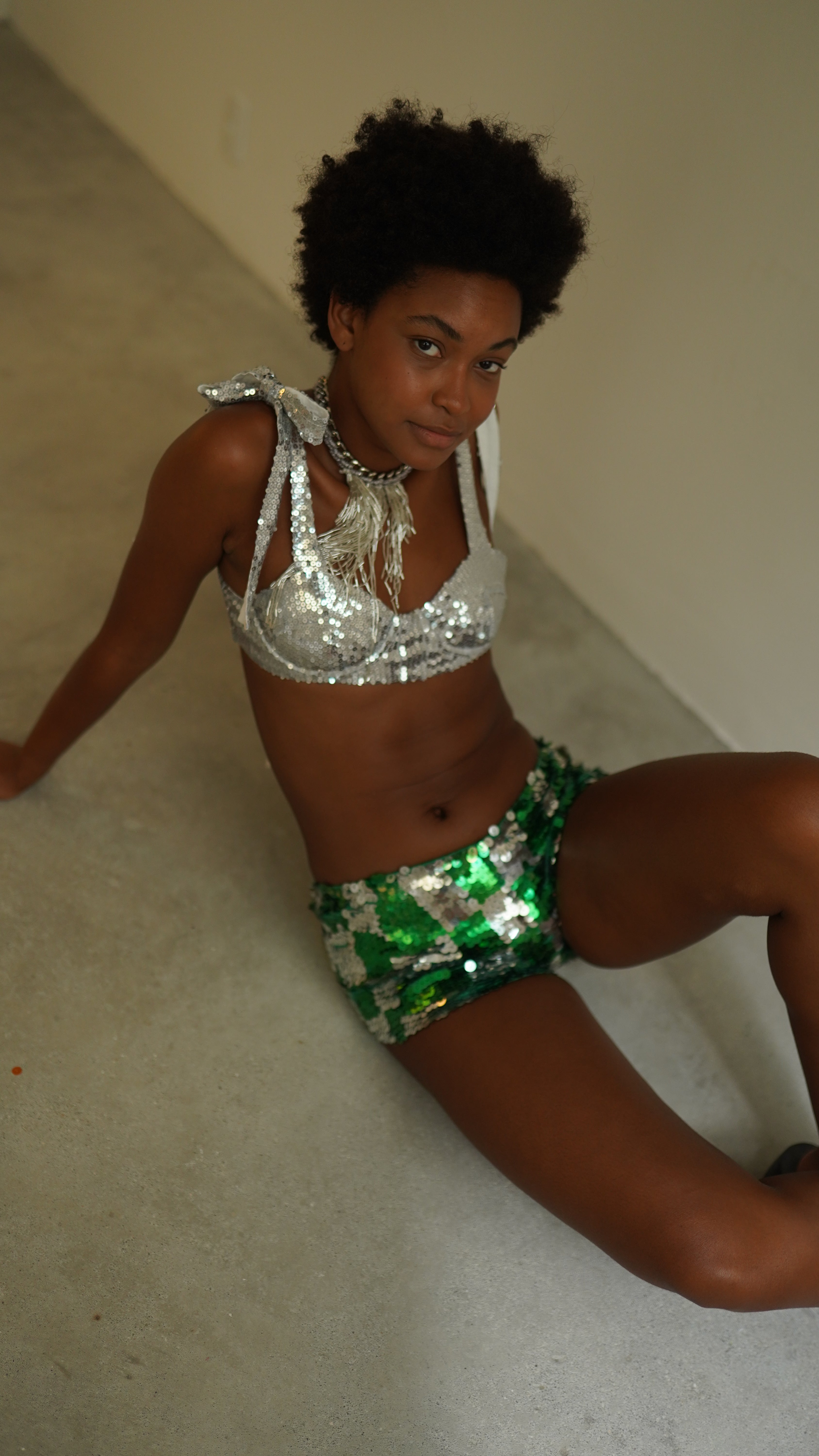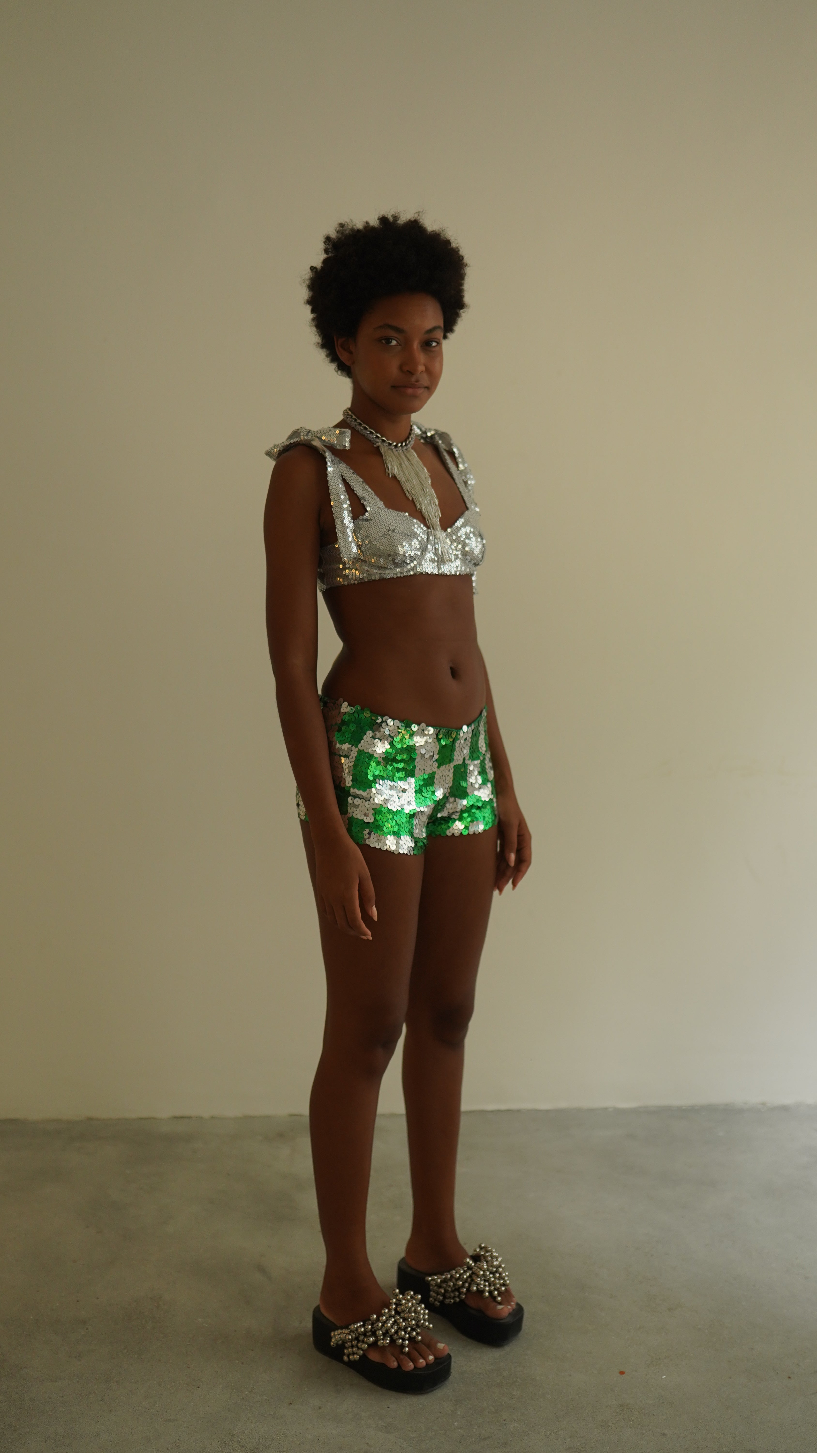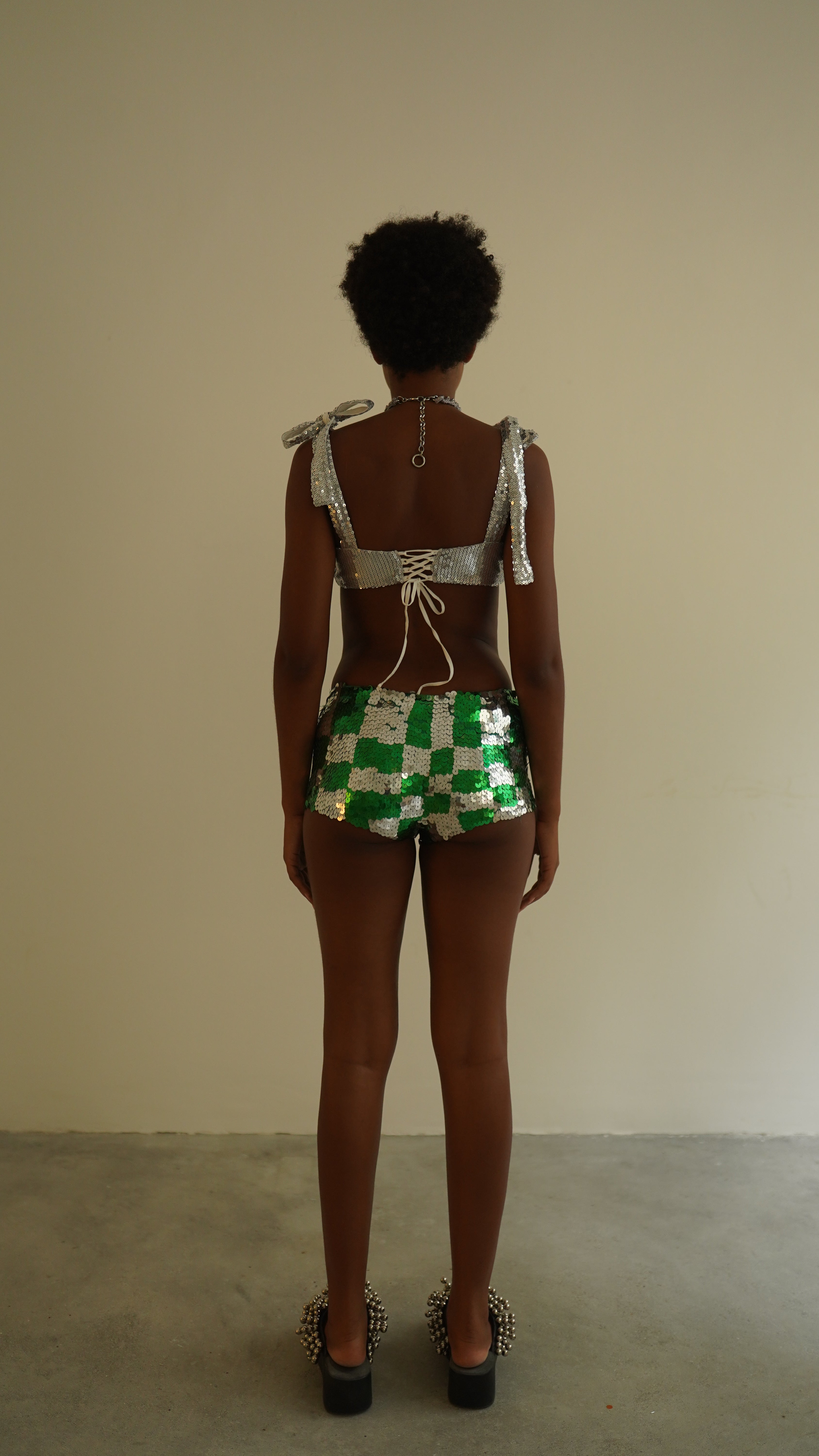 Top estilo corset com amarração nas costas, com aros de sustentação, forro e alças reguláveis através de amarração. A modelo veste P.